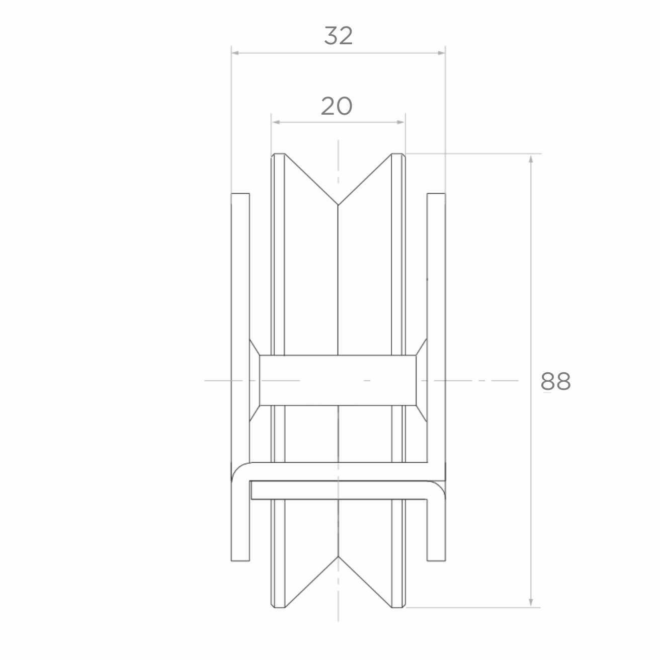 - Largeur de rainure V : 20 mm