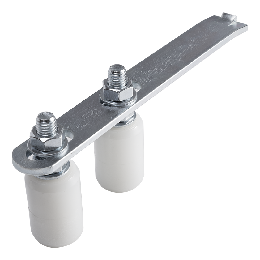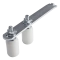 Le guidage supérieur réglable PSG est un élément de montage en acier destiné à la stabilisation des portails coulissants — aussi bien autoportants que sur rails. Équipé de deux roulettes réglables en plastique, il assure un guidage fluide et silencieux du portail verticalement lors de son ouverture et fermeture. Grâce à l'écartement réglable des roulettes (15–65 mm), le support s'adapte à la largeur du profilé fermé avec lequel est finie la bordure supérieure du portail.