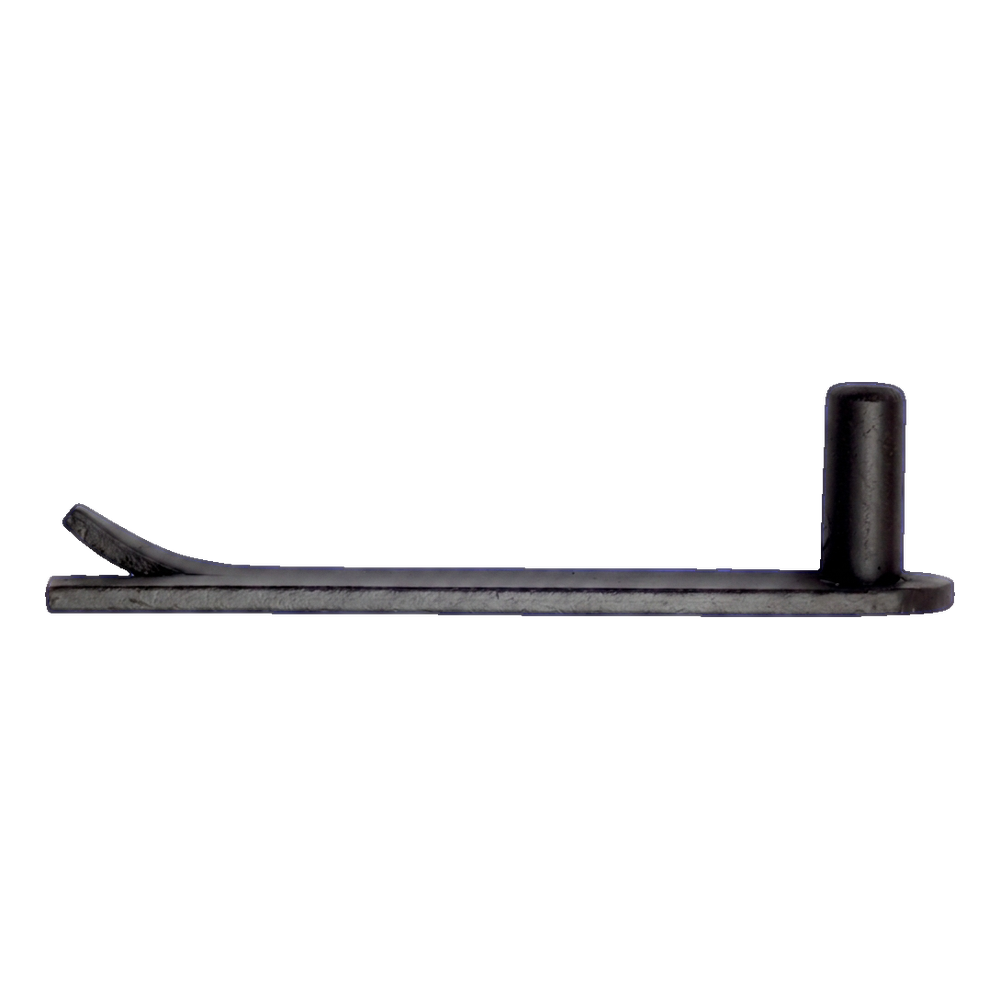Pivot (axe) de charnière à sangle à sceller de fabrication PSG — élément destiné au montage de charnières à sangle dans les portails battants. L'axe est encastré dans un pilier maçonné ou en béton, et le bras de la charnière à sangle est placé sur l'axe saillant. La construction avec base plate à languette assure un ancrage durable et stable dans le mortier ou le béton, éliminant le risque de rotation du pivot dans le pilier.