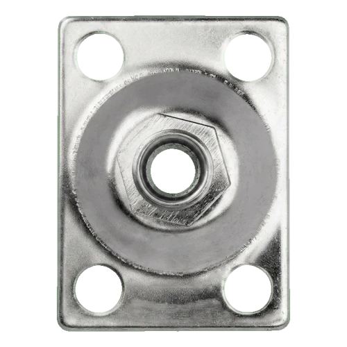 La plaque se fixe à l'aide de quatre vis par les trous de diamètre 10,5 mm, disposés selon un entraxe de 35 × 55 mm. Le filetage central M12 permet un vissage rapide de l'axe de charnière réglable, ce qui permet un réglage précis de la position du battant de portail ou portillon. La construction universelle signifie que la plaque convient tant pour un montage à gauche qu'à droite — sans nécessité de commander des variantes séparées.
