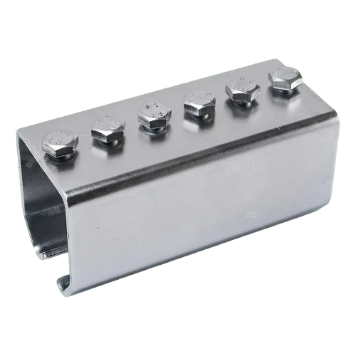 Raccord galvanisé pour rails de portail suspendu de marque PSG, destiné au raccordement de sections de cornière (rail de roulement) de profil 45×46 mm. Il permet un raccordement rapide et sûr des segments de rail successifs, assurant la continuité de la voie de roulement des chariots de portail. Le kit est livré avec 6 vis de fixation — prêt pour un montage immédiat sans nécessité de compléter des éléments de fixation supplémentaires.