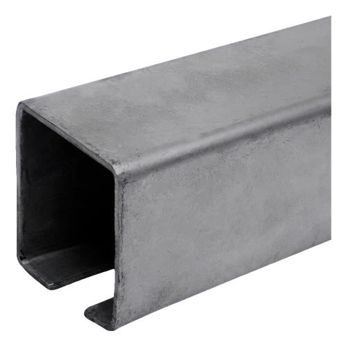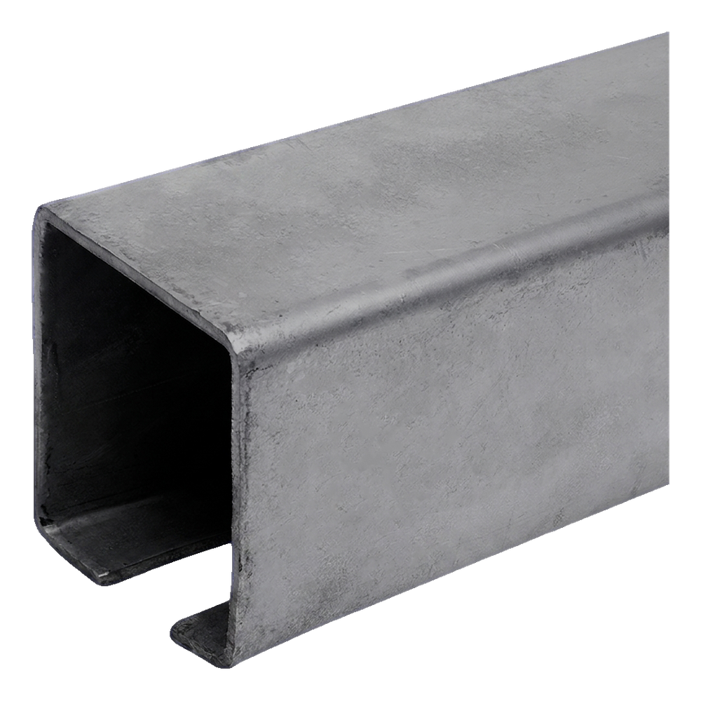 Rail de guidage en acier (cornière) d'une longueur de 7000 mm destiné aux portails coulissants autoportants. Le profil semi-fermé de section extérieure 80×80 mm constitue un élément constructif clé du portail — c'est sur lui que roulent les galets des chariots de guidage, supportant toute la structure du vantail. La construction massive avec des parois d'épaisseur 5 mm garantit la résistance et la stabilité même pour les portails lourds et de grande taille.