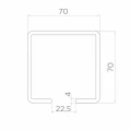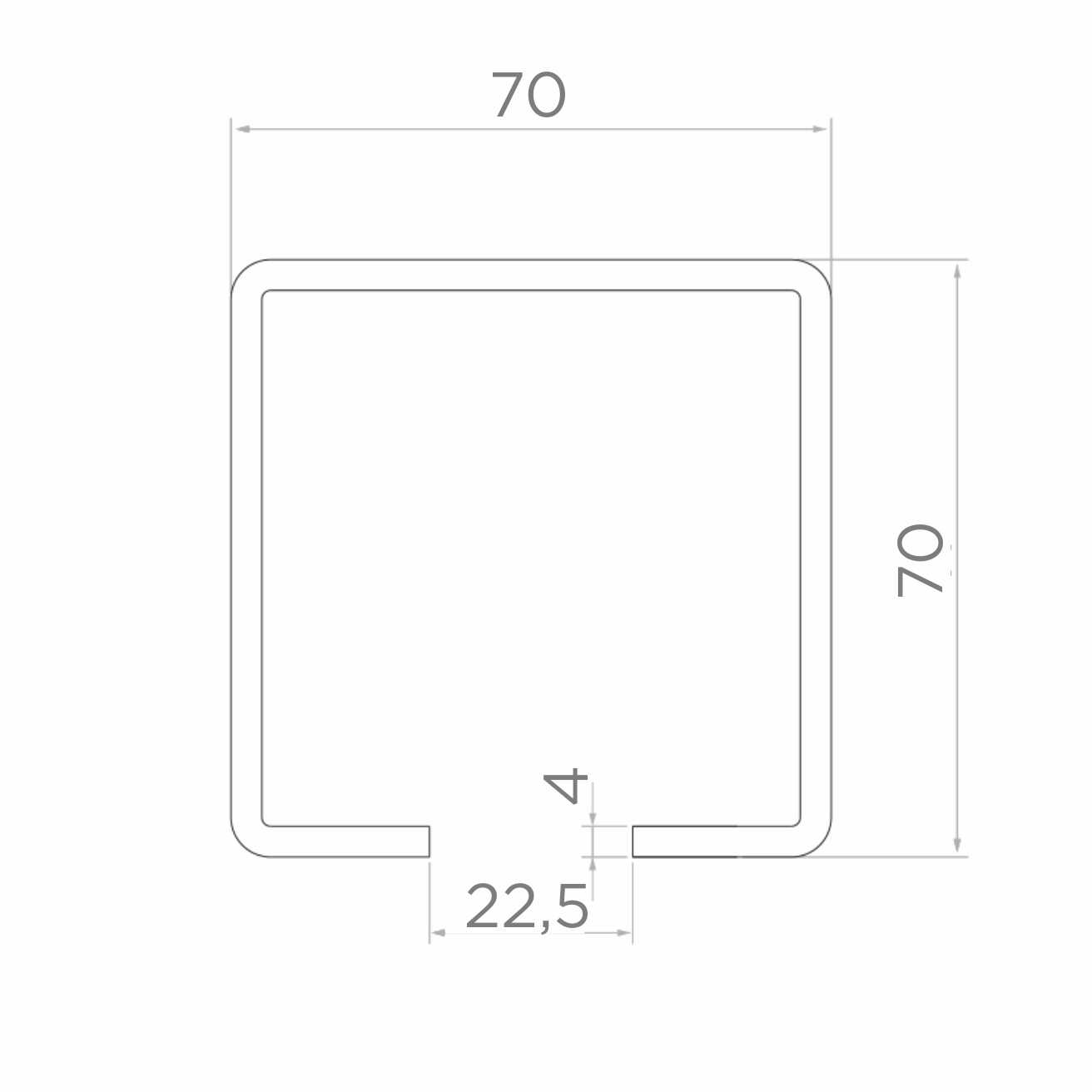 Le profilé est un élément clé du système de portails coulissants autoportants. Monté horizontalement, il constitue la voie de roulement sur laquelle se déplacent les chariots supportant le vantail du portail. La fente d'une largeur de 22,5 mm dans la partie inférieure du profilé permet le guidage libre des chariots de roulement. Grâce aux dimensions de section 70×70 mm, le rail convient aux portails de grande masse propre, assurant la stabilité et la rigidité de toute la construction.