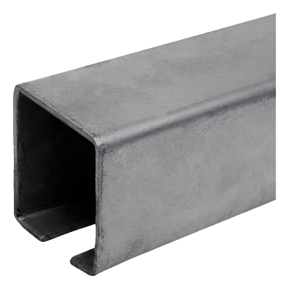 Rail de guidage (profilé) en acier de production PSG d'une longueur de 6000 mm, destiné aux portails coulissants autoportants. Le profilé remplit la fonction d'élément structural principal sur lequel est suspendu le portail — les galets des chariots de roulement se déplacent à l'intérieur du profilé, assurant un coulissement fluide et silencieux du vantail. La construction solide en acier d'une épaisseur de paroi de 4 mm garantit une haute capacité portante ainsi qu'une durabilité dans les conditions d'exploitation quotidienne.