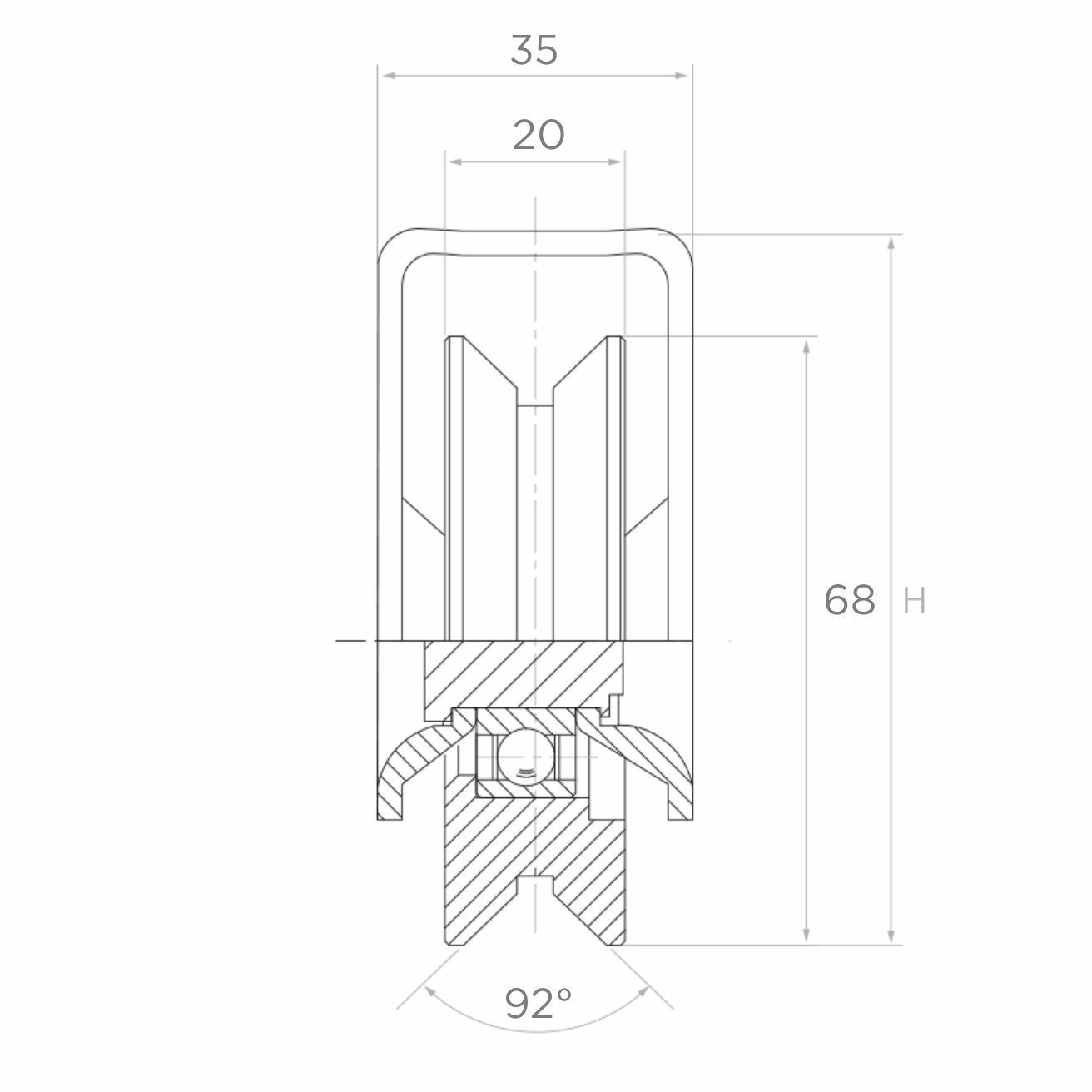 - Roulette de portail V Ø 68 mm dans le support de montage