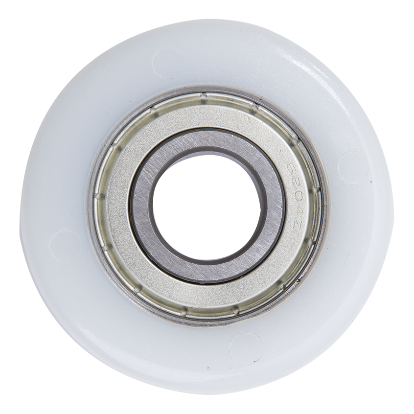 La roulette est fabriquée en plastique résistant, qui assure un fonctionnement silencieux et fluide du portail, tout en étant résistante à la corrosion et ne nécessitant pas de lubrification de la surface de roulement extérieure. Au centre est monté un roulement à billes 6204Z avec protection métallique double face, garantissant une longue durée de vie et de faibles résistances au roulement même en utilisation intensive.