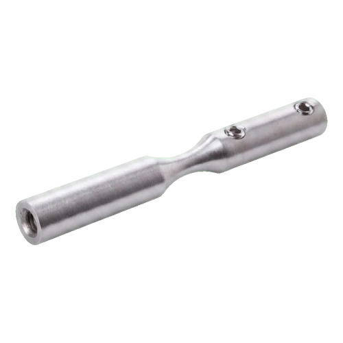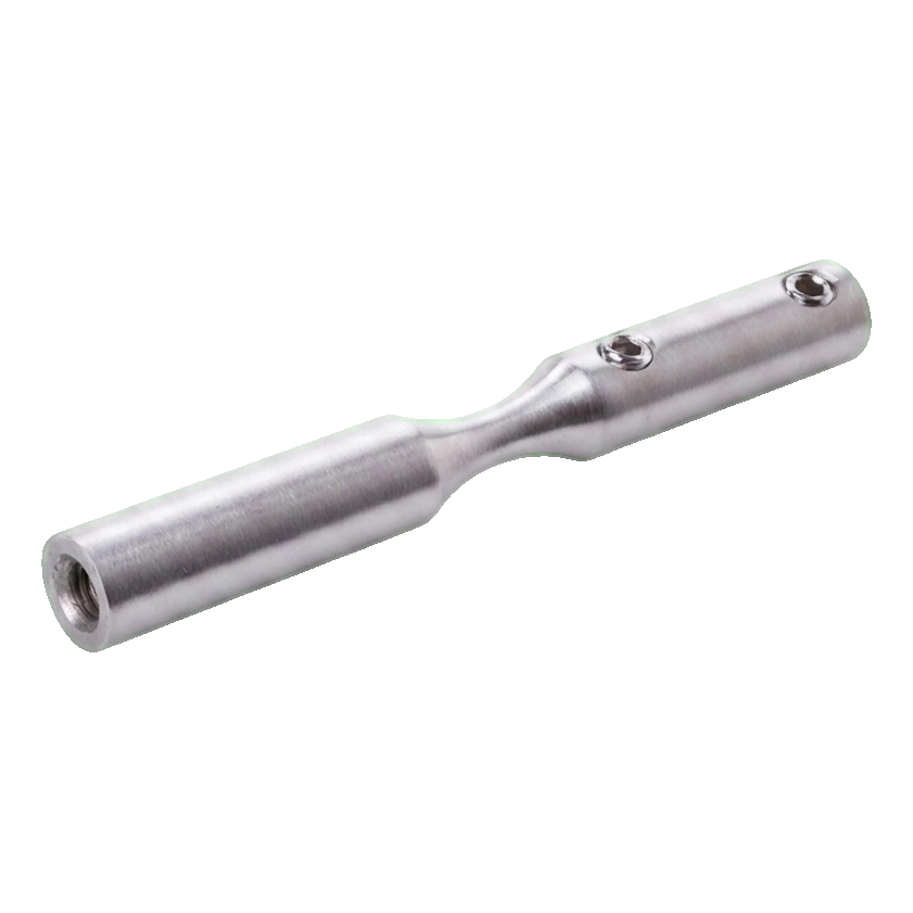 L'élément fabriqué en acier inoxydable AISI 304 avec finition satinée assure une haute résistance à la corrosion et un aspect esthétique et sobre. Le montage s'effectue par vissage — le support est équipé de filetages M6 ainsi que de trous de blocage (Ø6 mm), ce qui garantit une liaison stable et durable avec le câble et la structure porteuse.