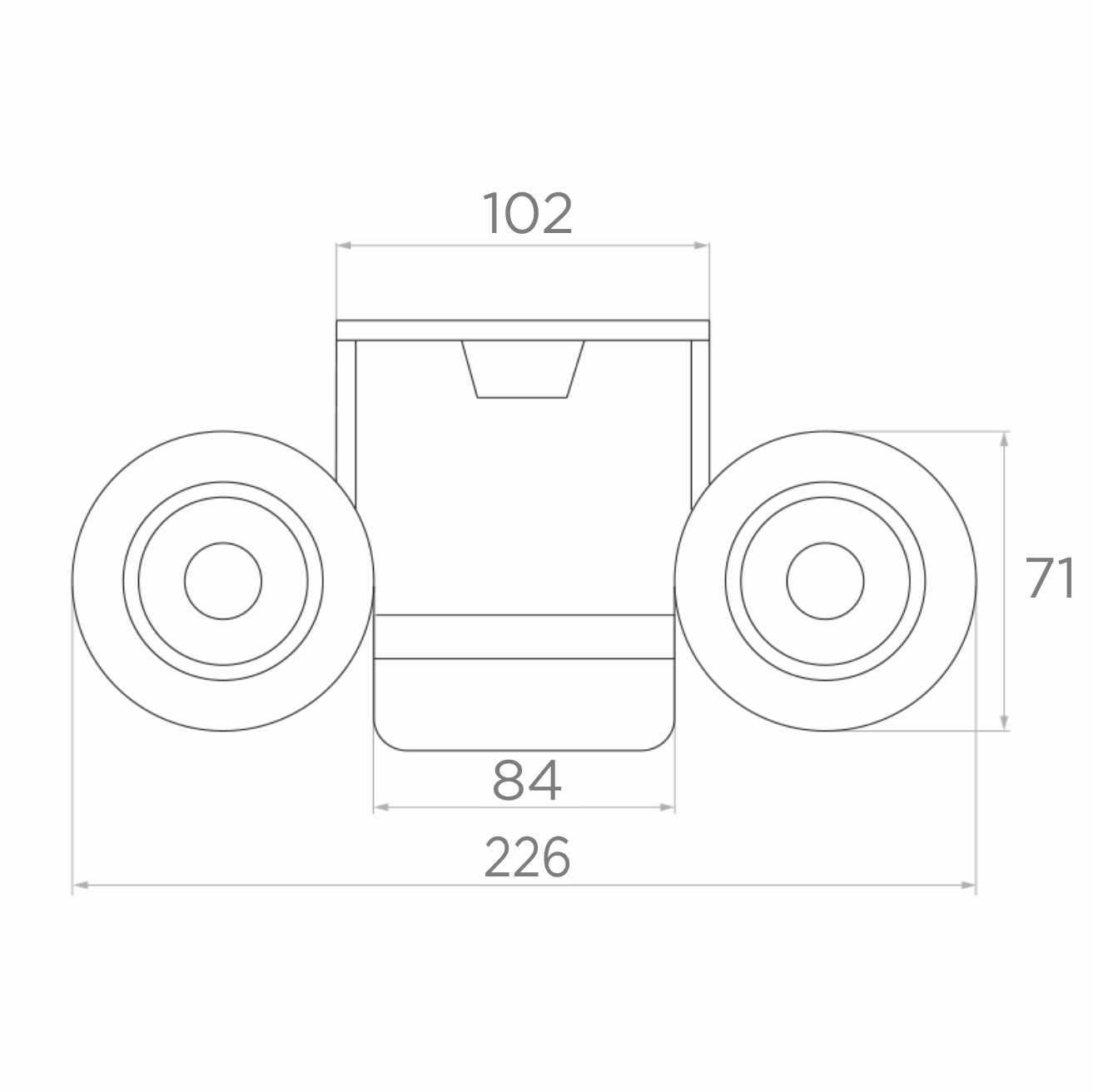 - Largeur totale (avec roulettes) : 226 mm