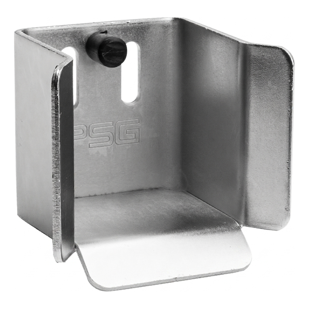 Support d'arrêt en acier PSG destiné aux portails coulissants autoportants guidés sur rail 70×70 mm et 80×80 mm. Stabilise le vantail du portail après fermeture et répartit uniformément son poids sur un plus grand nombre d'éléments de construction, ce qui prolonge considérablement la durée de vie des chariots de roulement et limite leur usure d'exploitation.