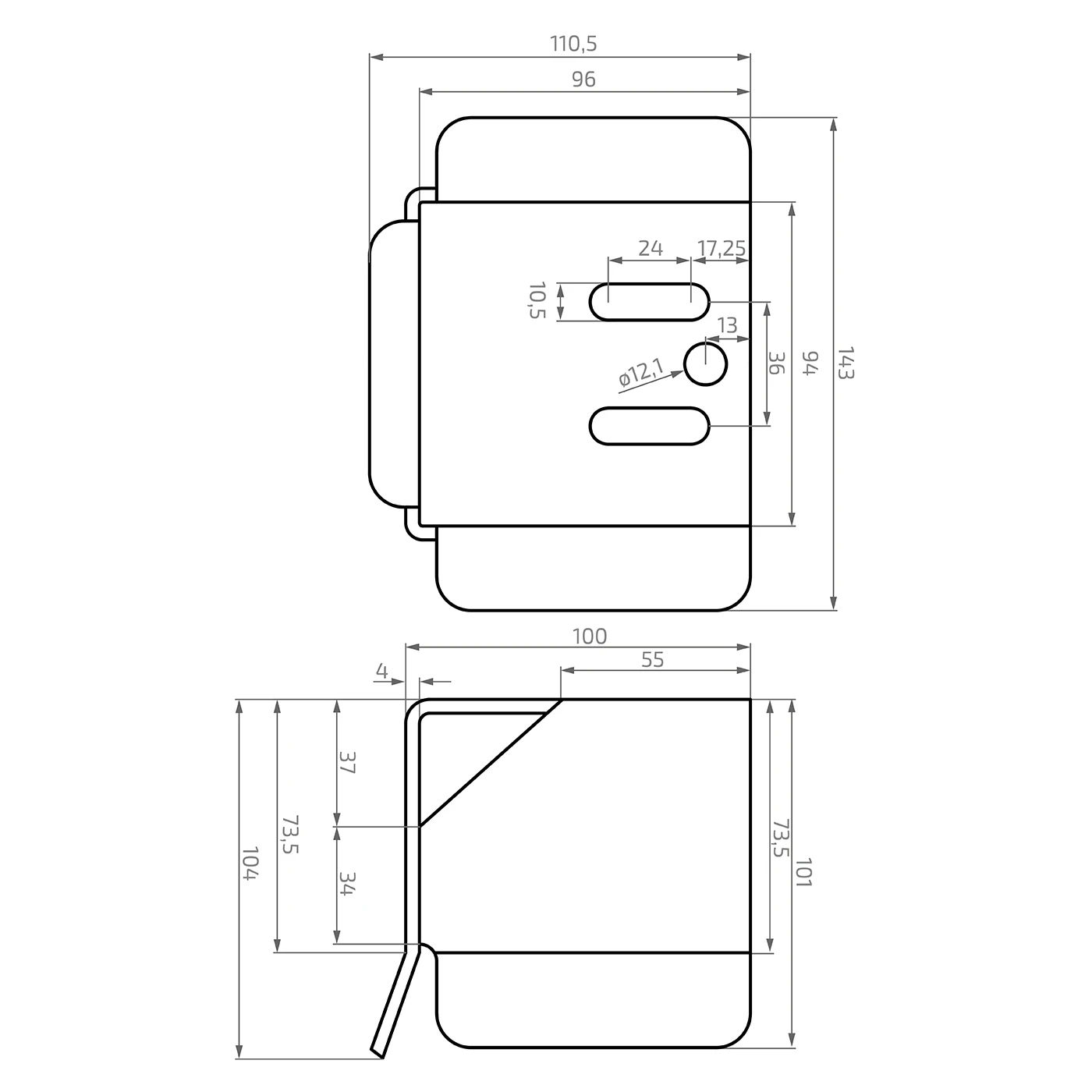 - Trous de montage oblongs : 24 × 10,5 mm – 2 pcs