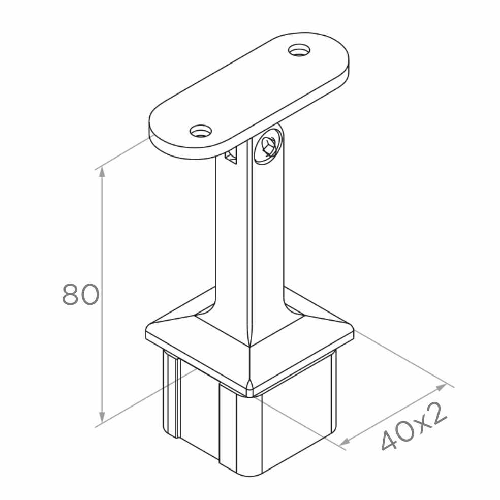 Le support fait partie du système de balustrades 40×40 mm — compatible avec d'autres éléments de ce système (poteaux, mains courantes plates, raccords, embouts). Solution idéale pour les entreprises réalisant des montages de balustrades intérieures dans les bâtiments résidentiels, de bureaux et d'utilité publique.