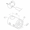 Le corps du support a une forme cylindrique avec un trou de passage transversal pour la tige. Le trou de montage dans l'axe de la pièce permet de visser le support sur une surface plane (par ex. poteau, profilé). La vue de montage sur le plan technique montre la méthode intuitive d'insertion de la tige dans le support.