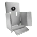 Le support est équipé d'un butoir en caoutchouc absorbant les chocs du rail lors de la fermeture du portail, ce qui protège le mécanisme contre les dommages et réduit le bruit. Les trous de montage en forme d'haricots permettent le réglage de position du support après installation, ce qui facilite considérablement l'alignement du portail dans l'axe de guidage. Les ailettes latérales écartées servent de guides d'orientation du rail, assurant une approche fluide et sécurisée même en cas de léger écart de trajectoire du portail.