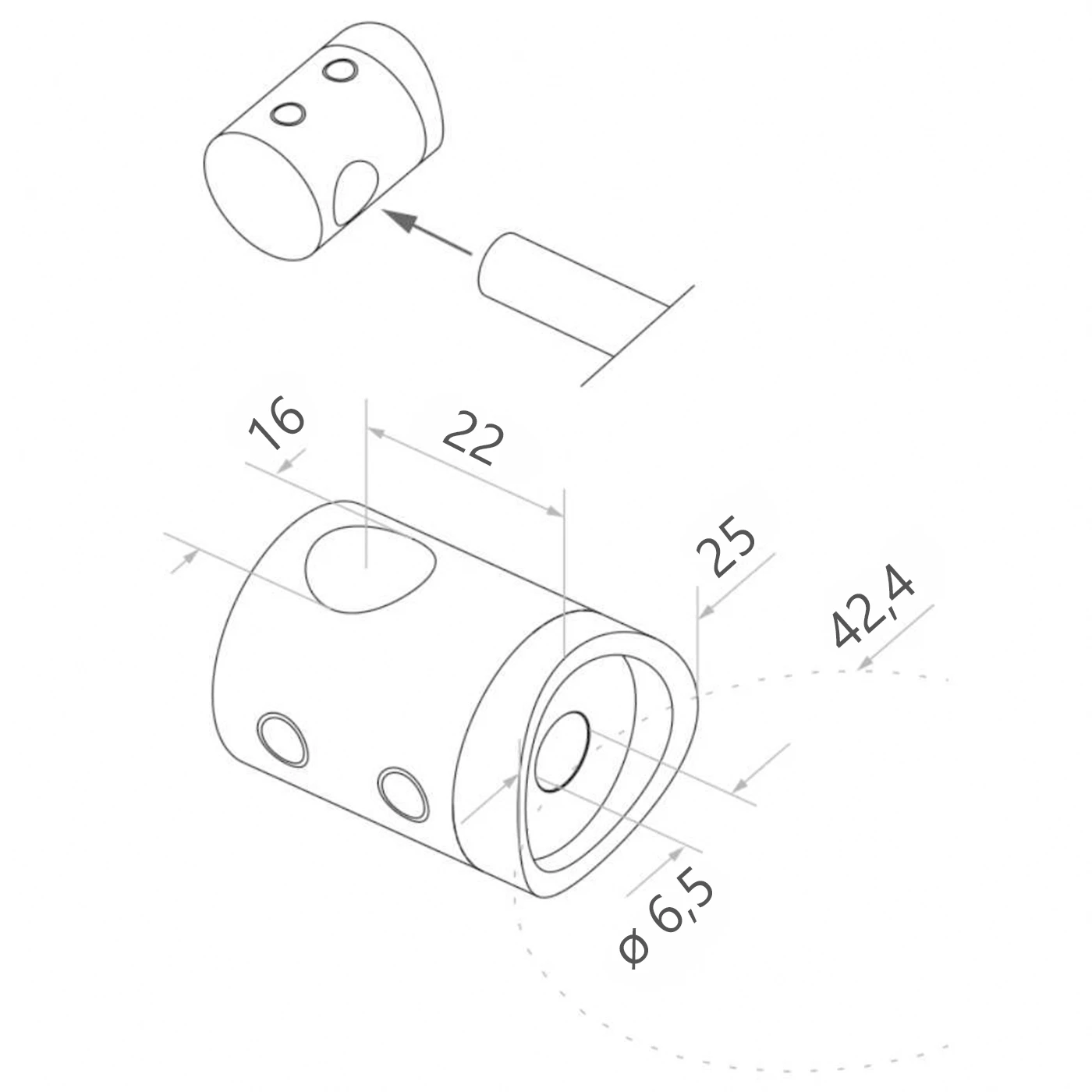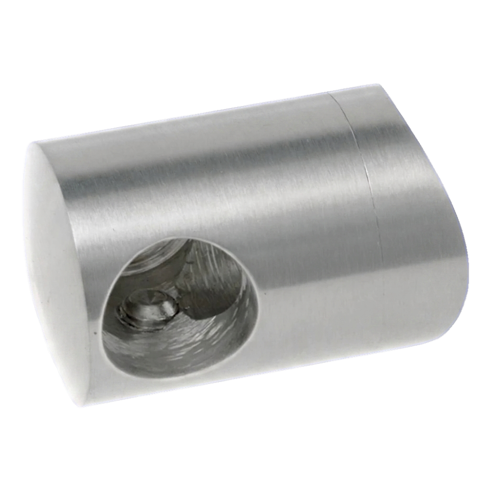 Support d'extrémité droit pour tige ø16 mm destiné au montage sur tube porteur ø42,4 mm. L'élément sert de fixation de départ ou de fin pour le remplissage à tiges dans les balustrades en acier inoxydable. Grâce au profilage précis de la base, il s'adapte parfaitement à la surface du tube, assurant une connexion rigide et esthétique sans nécessiter d'usinage supplémentaire.
