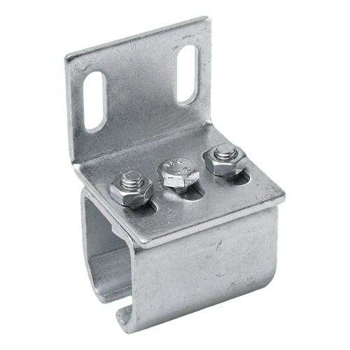Le support sert à suspendre le rail de guidage du portail coulissant dans les systèmes de portails avec guide supérieur. L'équerre de montage possède deux trous oblongs dans le bras vertical, qui permettent un réglage précis de la hauteur de suspension du rail ainsi que la compensation des inégalités du support de montage. La connexion de l'équerre avec le rail est réalisée à l'aide des vis incluses — la construction assure une fixation stable et rigide même lors d'une exploitation intensive du portail.