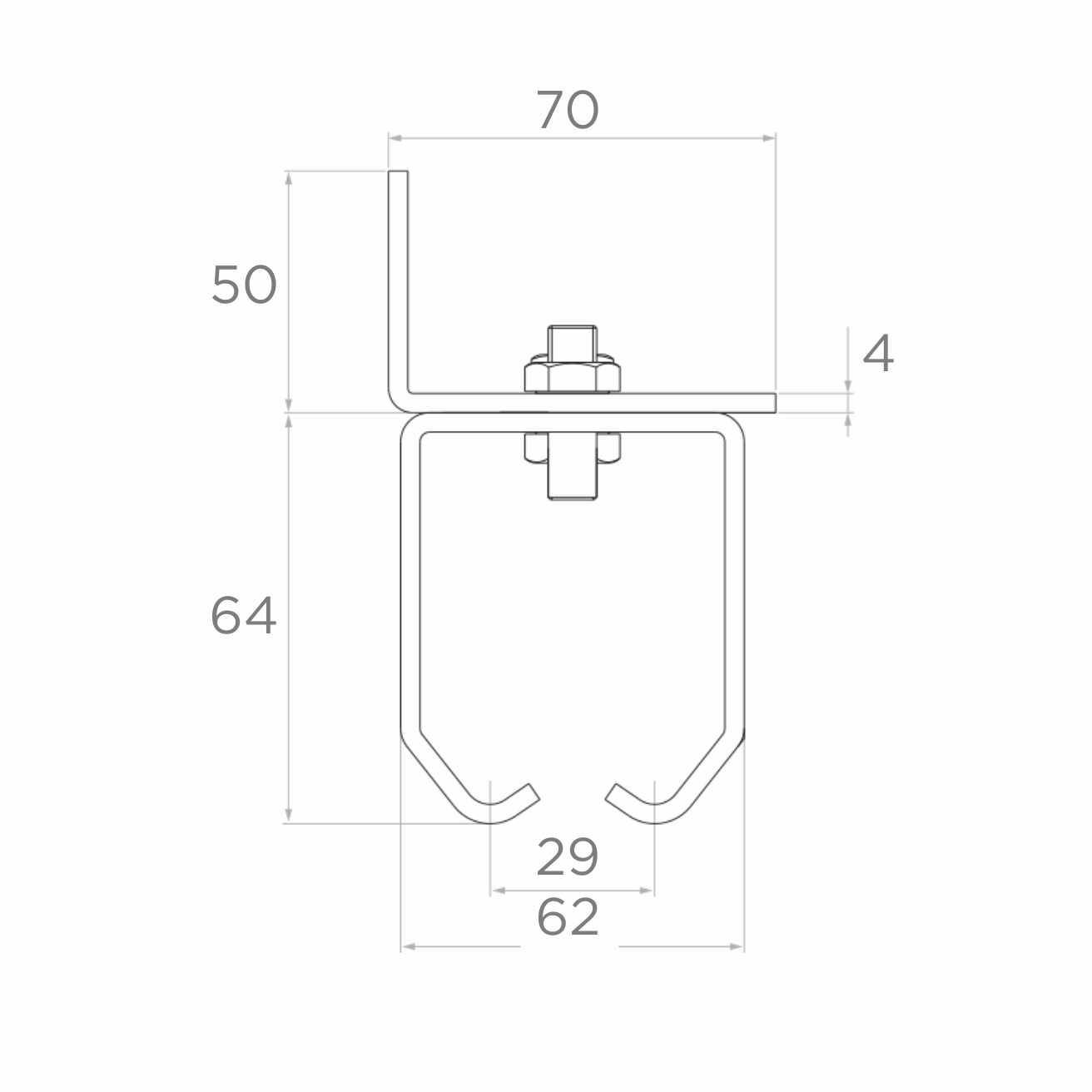 - Hauteur du bras de fixation : 50 mm