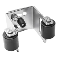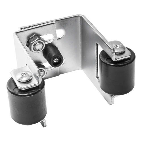 Le support se monte dans la partie supérieure de l'ouverture du portail (sur le linteau ou le pilier). Lorsque le portail se ferme, le vantail s'engage entre les roulettes, qui le stabilisent latéralement et empêchent les vibrations sous l'effet du vent. Le réglage de l'écartement permet un ajustement précis à l'épaisseur du vantail spécifique dans la plage de 55 à 90 mm — il suffit de desserrer les vis de fixation, régler la distance souhaitée et resserrer. La polyvalence de cet élément en fait un accessoire indispensable lors du montage de portails coulissants tant autoportants que sur rail.