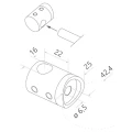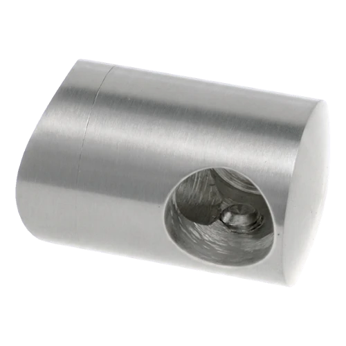 Support terminal (de départ) gauche destiné au montage de tige de diamètre ø 16 mm sur tube porteur ø 42,4 mm. Sert d'élément de début ou de fin de remplissage à tiges dans les rampes en acier inoxydable. Fabriqué en qualité AISI 304 avec finition satinée — garantit une haute résistance à la corrosion et un aspect esthétique mat cohérent avec les autres éléments du système de rampe 42,4 mm.