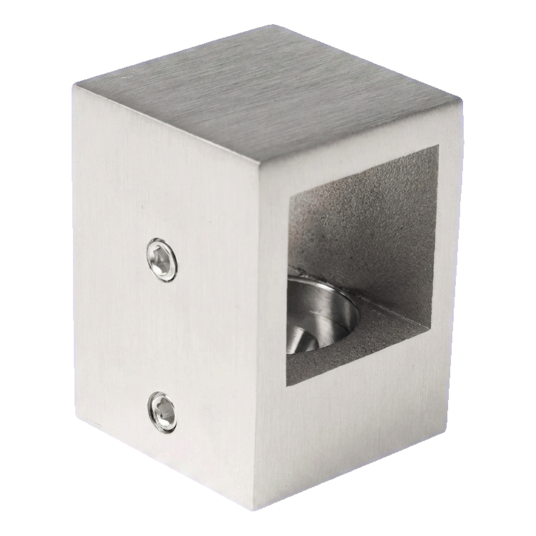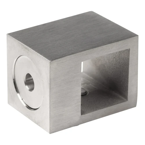 Le support est monté en système plat — directement sur une surface plane à l'aide d'une vis avec filetage M6. Le montage simple se traduit par un temps d'installation plus court, ce qui est particulièrement important lors de la réalisation de projets de balustrades plus importants. La barre ou le profil 20×20 mm passe à travers le trou traversant de diamètre 21,2 mm, ce qui assure un jeu de montage approprié et facilite le positionnement des éléments.