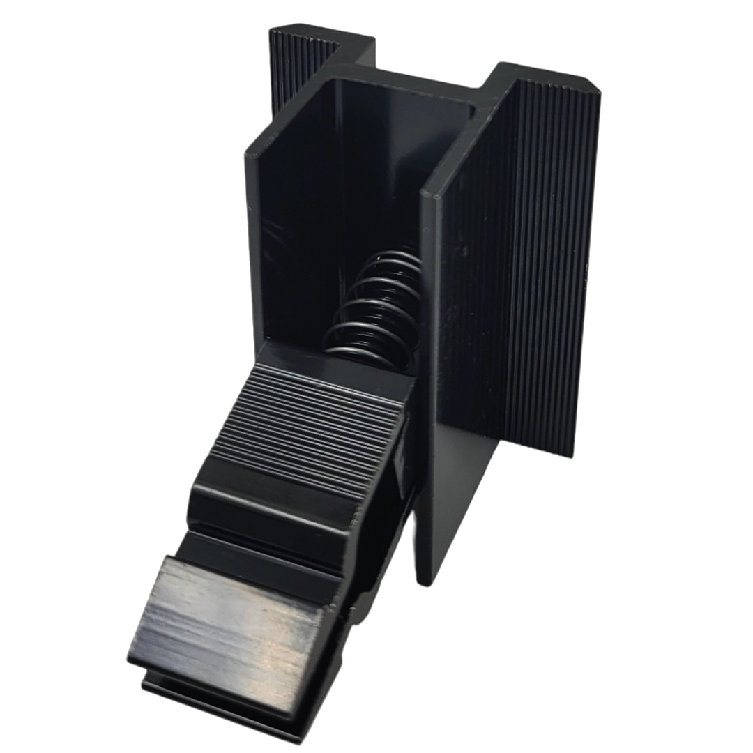 Pince centrale en Aluminium 6060 noir - Fermeture à cliquet avec écrou et boulon, peinture noire L50 (type 2) pour la fixation de modules photovoltaïques.