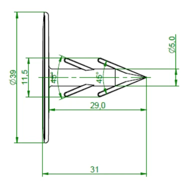 Pourquoi choisir ce produit ? La construction spéciale avec double barbelure assure un ancrage sur dans l'isolation, tandis que la rondelle plate de 39 mm de diametre comprime efficacement le film sans l'endommager. L'extrémité pointue permet de percer facilement le film et de l'enfoncer dans l'isolation – le montage s'effectue en un seul geste, sans outils supplémentaires.