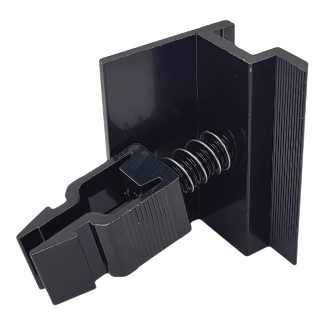 Pince latérale (d'extrémité) avec système CLIC pour la fixation de modules photovoltaïques avec un cadre d'une épaisseur de 30 mm. Utilisée aux extrémités des rangées de panneaux — aussi bien sur les toits plats qu'en pente.