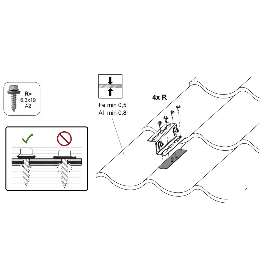 Plaque de fixation pour couverture de toiture 375x375mm CWL - Acier inoxydable H17 1.4016 pour systèmes photovoltaïques.