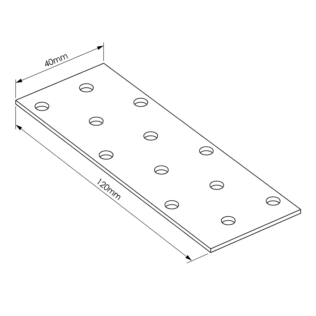 La plaque perforée 40×120 mm est un connecteur charpentier universel destiné à l'assemblage d'éléments en bois dans un même plan. Grâce à ses 12 trous répartis sur sa surface, elle permet de réaliser des assemblages de construction simples comme complexes. Fabriquée en tôle d'acier galvanisée d'une épaisseur de 2 mm, elle offre une haute résistance mécanique et une protection anticorrosion efficace — garantissant la durabilité des assemblages même dans des conditions atmosphériques difficiles.