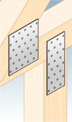 Les plaques perforées sont utilisées partout où les faces latérales des éléments en bois à assembler se trouvent dans le même plan. Elles sont particulièrement employées lors du montage de fermes de toiture ainsi que dans les assemblages de charpentes. La disposition universelle des trous permet une adaptation flexible à différentes configurations d'assemblage.