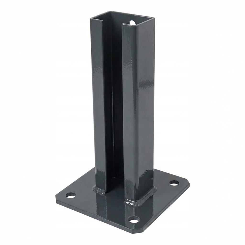 La platine est compatible avec les poteaux de clôture standard de section 60×40 mm, utilisés dans la plupart des systèmes de clôtures à panneaux. Solution idéale pour les entreprises d'installation réalisant le montage de clôtures sur fondations et murets béton préparés en extérieur — même dans des conditions atmosphériques difficiles.