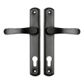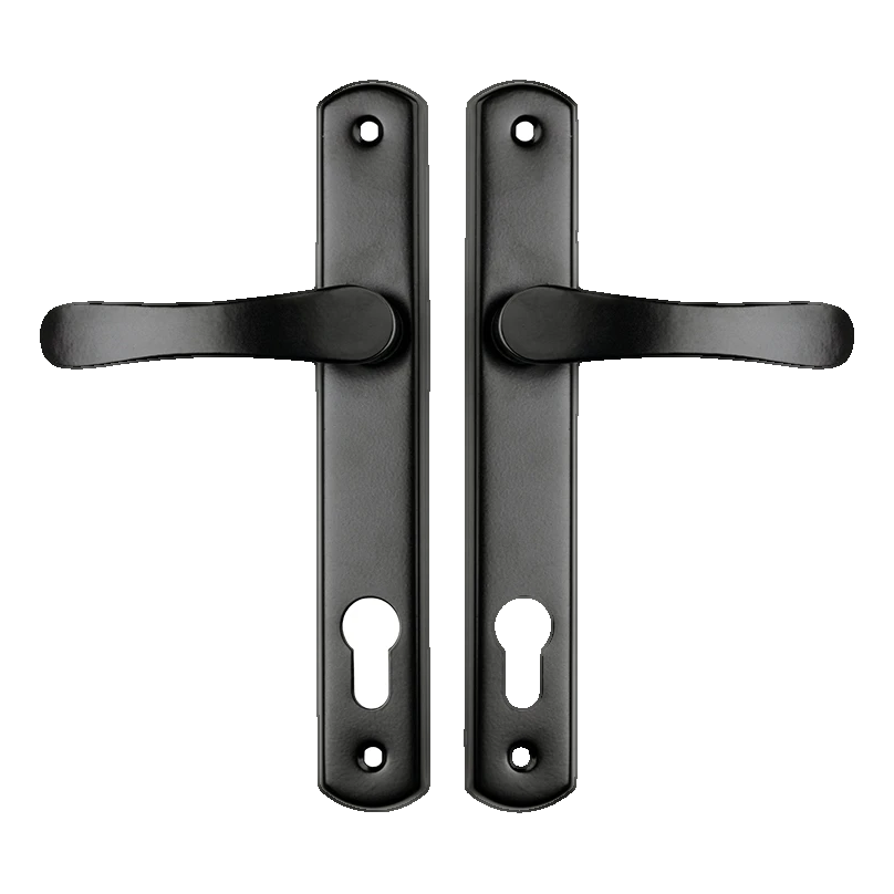 La plaque ergonomique avec trou adapté pour l'insertion d'un cylindre de serrure (Yale/PZ) garantit le confort d'utilisation et la compatibilité avec les serrures populaires. L'entraxe entre l'axe du trou pour cylindre et l'axe de la poignée est de 90 mm, ce qui correspond au standard le plus couramment utilisé dans les portes extérieures et portails.