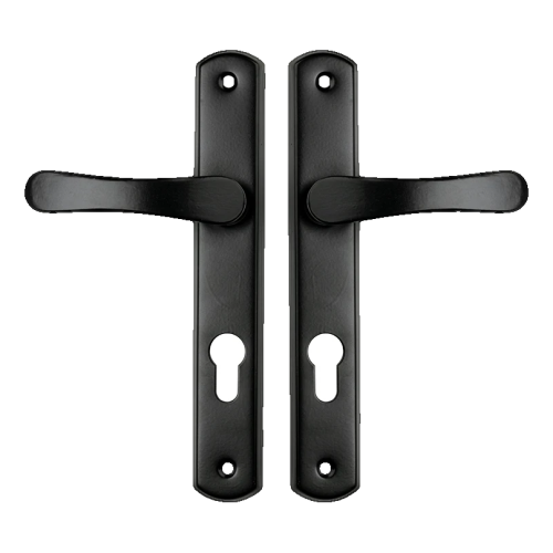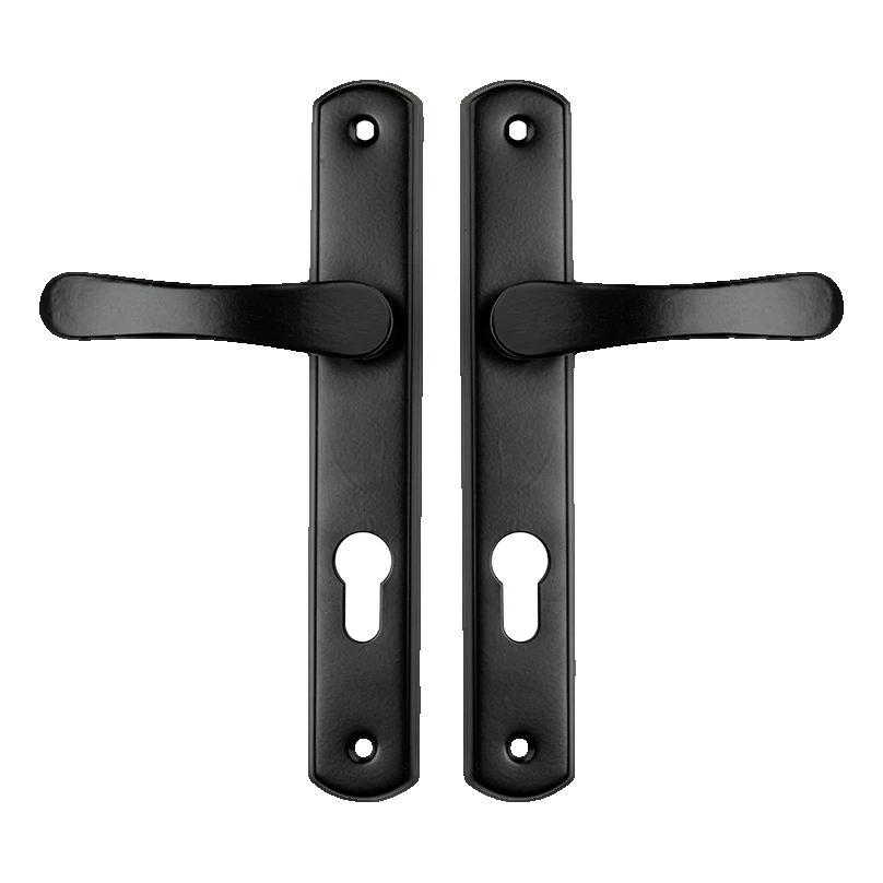 Poignée de porte Yale avec plaque biseau noire – entraxe 72 mm