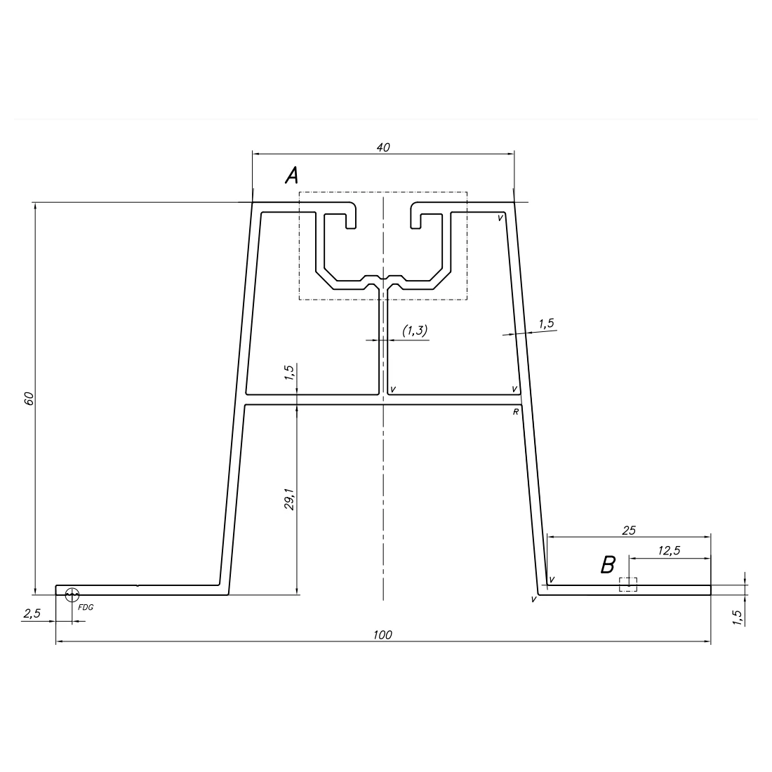 Profil Pont trapézoïdal en aluminium 6060 pour toitures métalliques, 330x60mm, pour modules photovoltaïques.