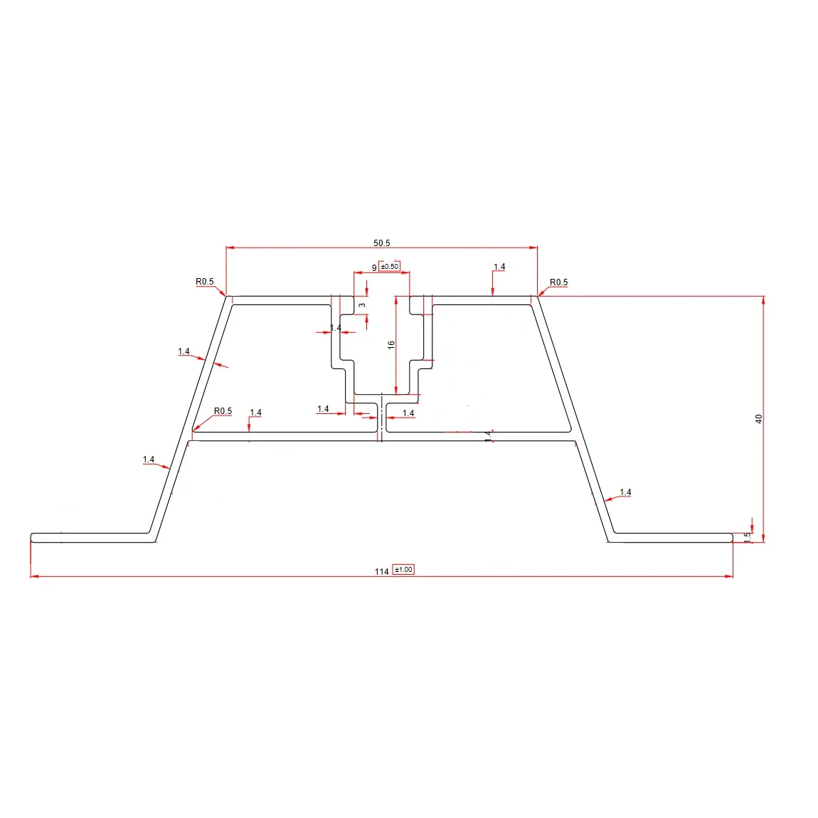 Profilé Pont trapézoïdal en Aluminium 6060 pour toitures métalliques, 600x40mm, destiné aux modules photovoltaïques.