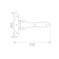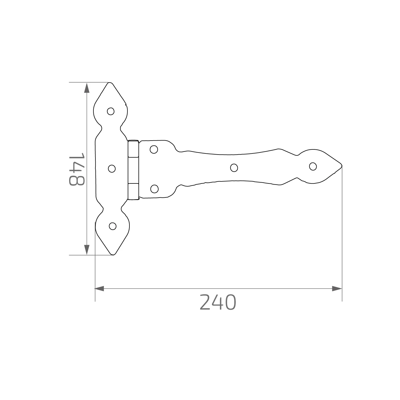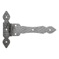 La charnière décorative à bande Postal en forme de T est un élément de quincaillerie solide en acier destiné au montage de portails, portillons, portes en bois et autres constructions où l'esthétique est importante en plus de la fonctionnalité. La surface décorative martelée donne à la charnière un caractère de forge, idéal pour les stylisations rustiques et traditionnelles.