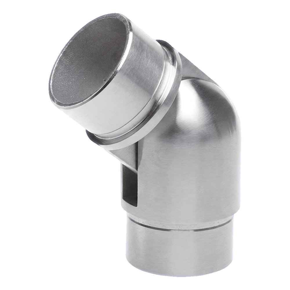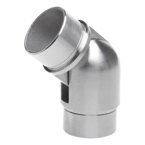 Coude articulé pour tube de balustrade d'un diamètre de 42,4 mm et d'une épaisseur de paroi de 2 mm, avec réglage d'angle dans la plage 90°–180°. Raccord destiné à la construction de balustrades en acier inoxydable — permet un changement fluide de direction de la main courante sur les escaliers, rampes et paliers, éliminant la nécessité d'utiliser de nombreuses variantes de coudes à angle fixe.