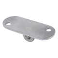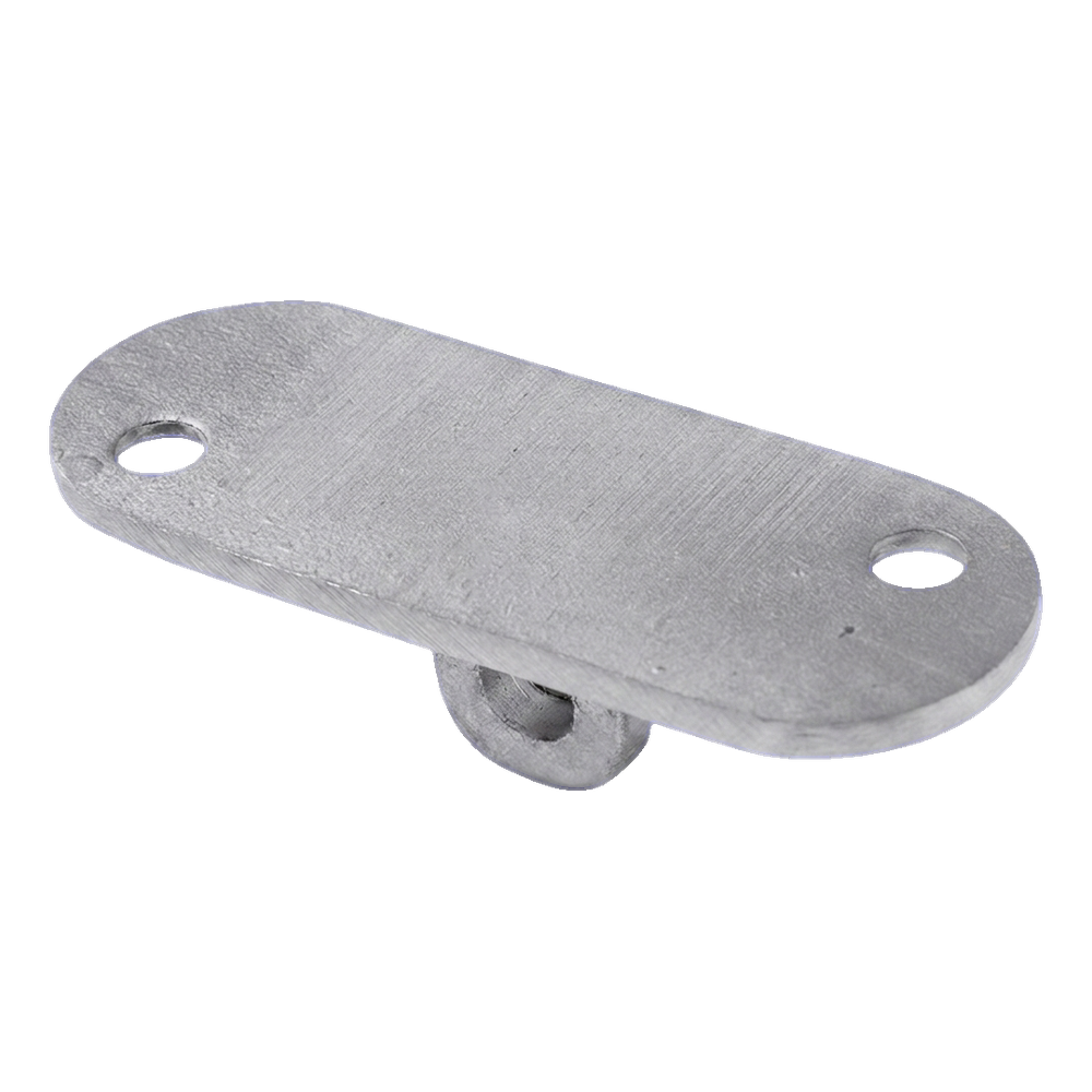La plaque possède deux trous de montage dans la plaque supérieure plate et une fixation articulée inférieure qui se connecte à l'élément de poteau ou à un autre composant du système de balustrade. Les dimensions compactes (64×24×4 mm) et la faible masse (0,03 kg) font que l'élément ne charge pas la construction et est facile à stocker et transporter. La finition satinée de surface s'harmonise parfaitement avec les autres éléments du système plat en acier inoxydable.