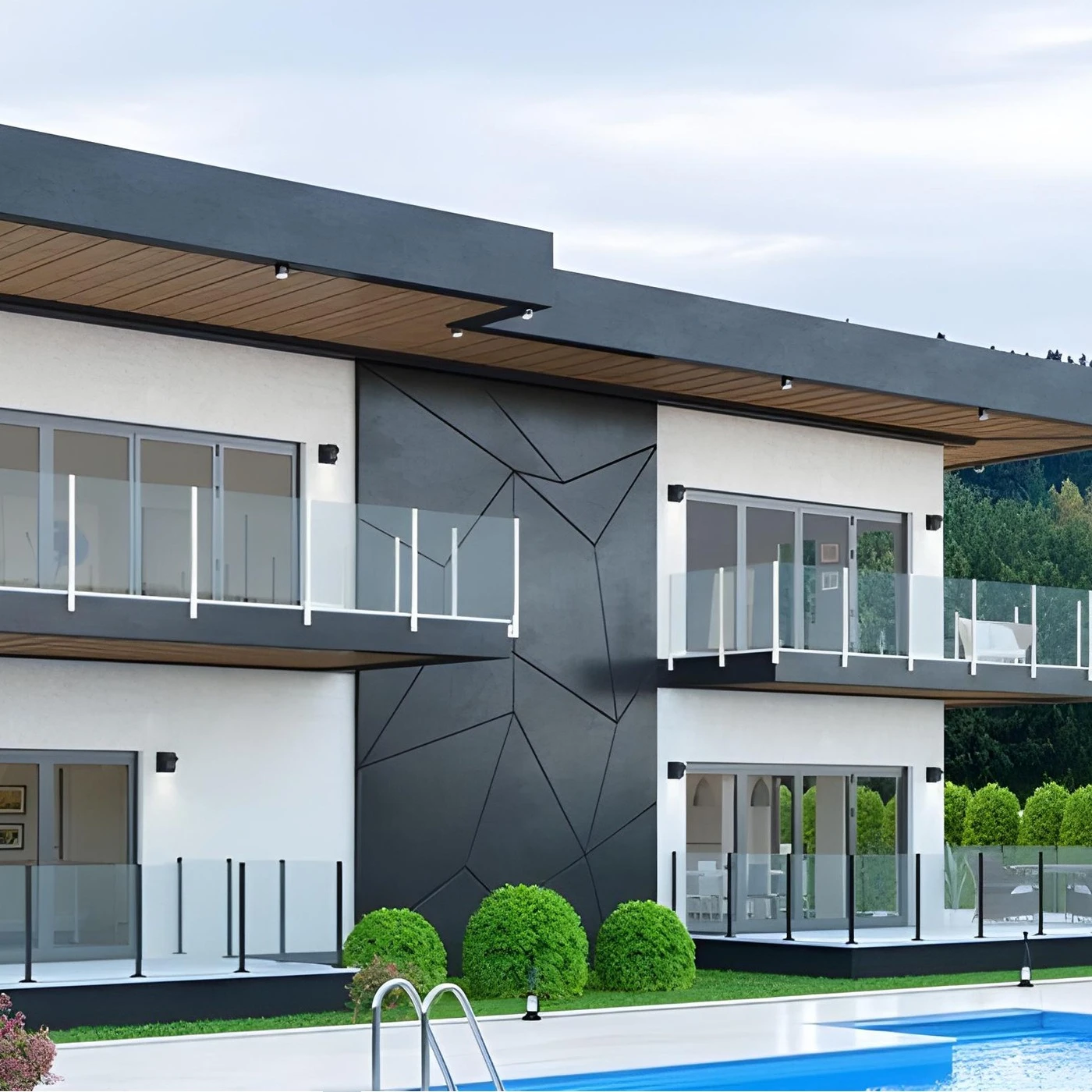 Le poteau d'angle Kozza est destiné à la construction de balustrades en verre sur balcons, terrasses, escaliers, mezzanines ainsi que dans les zones de piscines. Il convient aussi bien au bâtiment individuel qu'au commercial — dans les hôtels, restaurants, cafés ou établissements SPA. Le profilé d'angle permet de changer la direction de la balustrade, ce qui est indispensable pour clôturer les angles de terrasses et plates-formes d'observation.