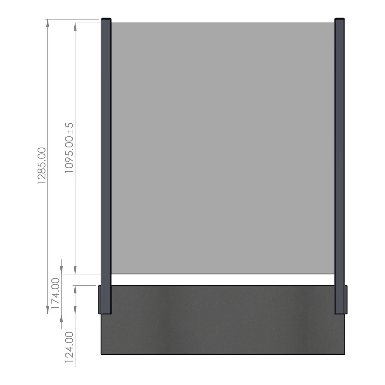 - Hauteur maximale de vitre : 1095 mm (tolérance ±5 mm)