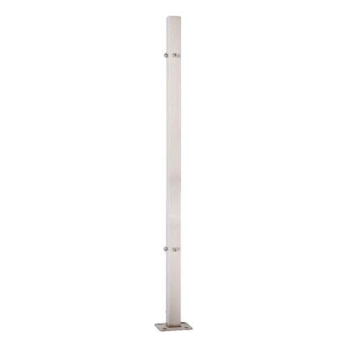 Le poteau est fixé au sol, ce qui assure une stabilité exceptionnelle de toute la construction de balustrade. Il est équipé de 4 trous précisément percés avec filetage M8 répartis sur deux niveaux (2 trous sur chaque niveau), permettant un vissage rapide de tous supports et connecteurs de balustrade. Cette configuration de trous est optimalement adaptée au poteau d'angle — elle permet la fixation d'éléments à un angle de 90°.