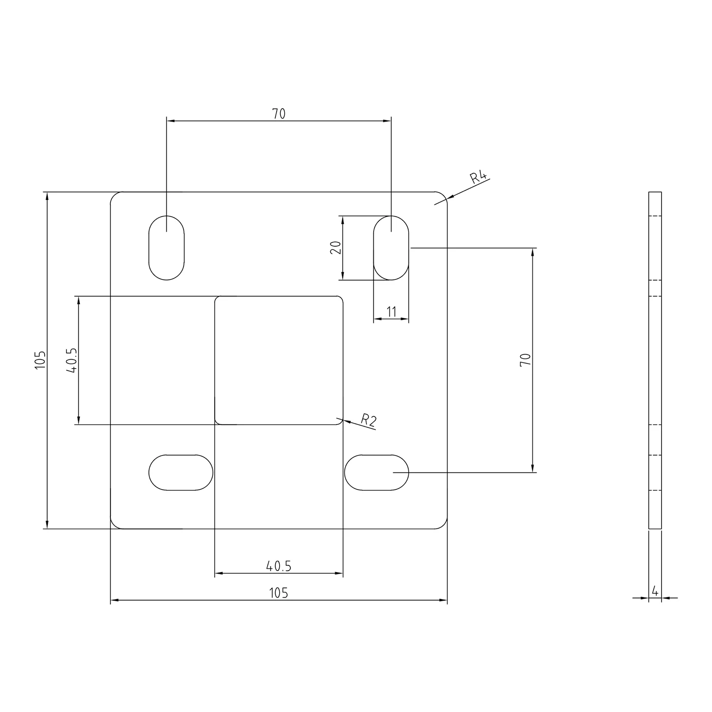 - Rayon d'arrondi des angles extérieurs : R4