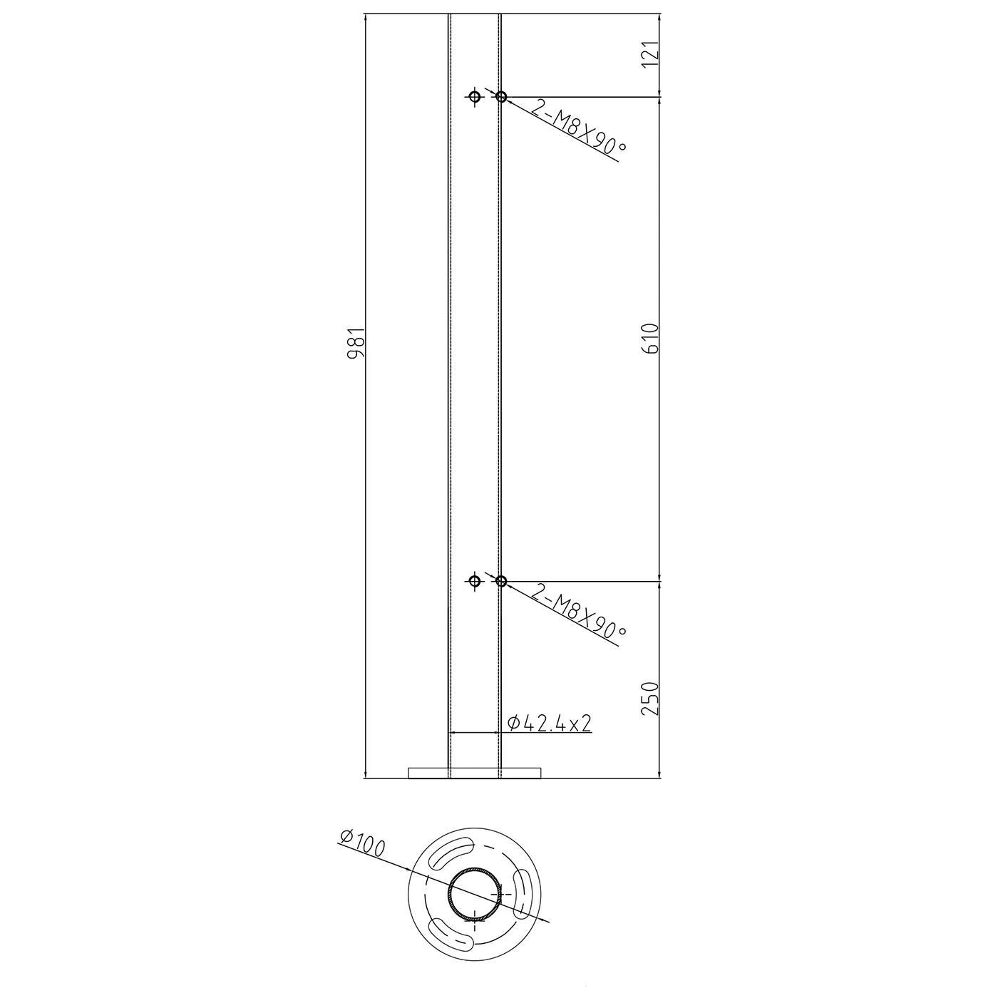 - Trous de montage : 4 pcs avec filetage M8