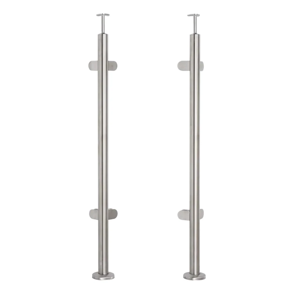 Poteau de balustrade d'angle acier inoxydable Ø 42,4 mm – 4 fixations pour verre