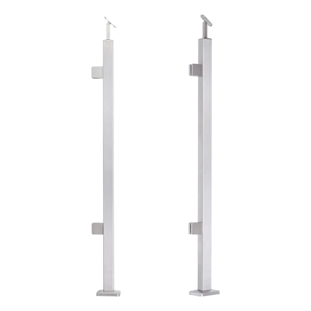 Poteau de balustrade d'extrémité gauche 40×40 mm en acier inoxydable – 2 fixations pour verre