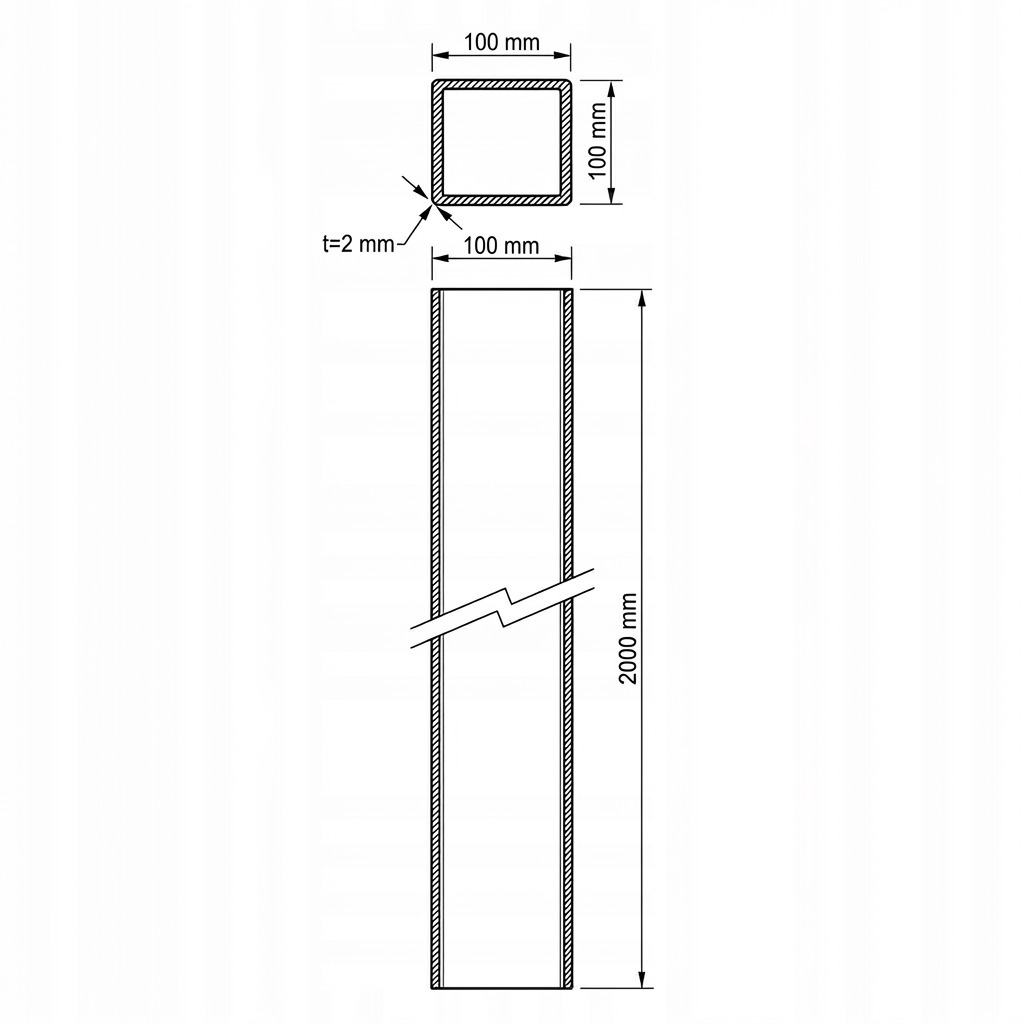 Poteau de clôture 100×100×2 mm d'une longueur de 2,0 m avec revêtement galvanisé est un élément porteur résistant destiné à la construction de clôtures à palissades – aussi bien résidentielles qu'industrielles. Réalisé en profilé d'acier à section carrée, il assure une haute stabilité de l'ensemble de la construction de clôture.