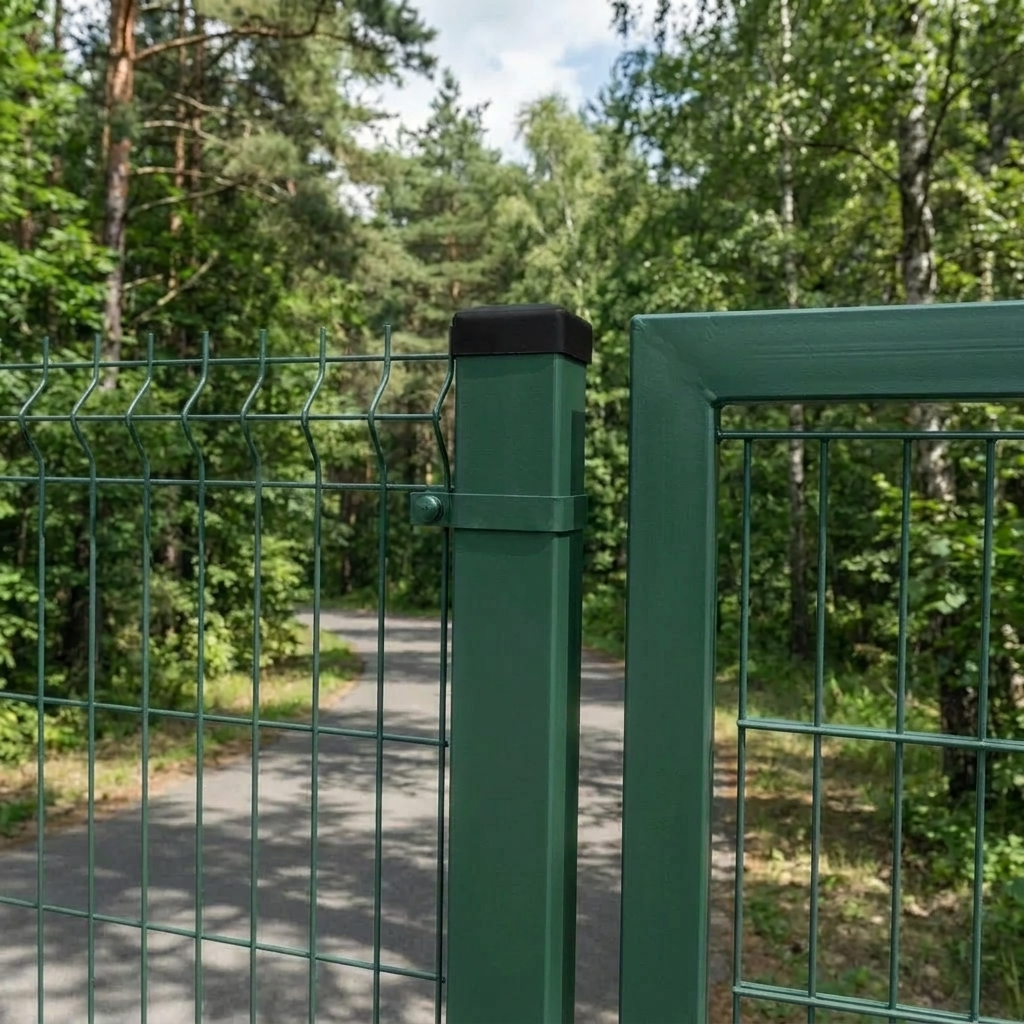 Le laquage en poudre en couleur verte RAL 6005 sur base galvanisée assure une double protection anticorrosion ainsi qu'un aspect esthétique de la clôture. Le revêtement galvanisé constitue la première couche de protection de l'acier, tandis que la laque en poudre crée une barrière supplémentaire contre les conditions atmosphériques. Ainsi, le poteau est prêt pour un montage immédiat — sans nécessité de peinture supplémentaire sur chantier.