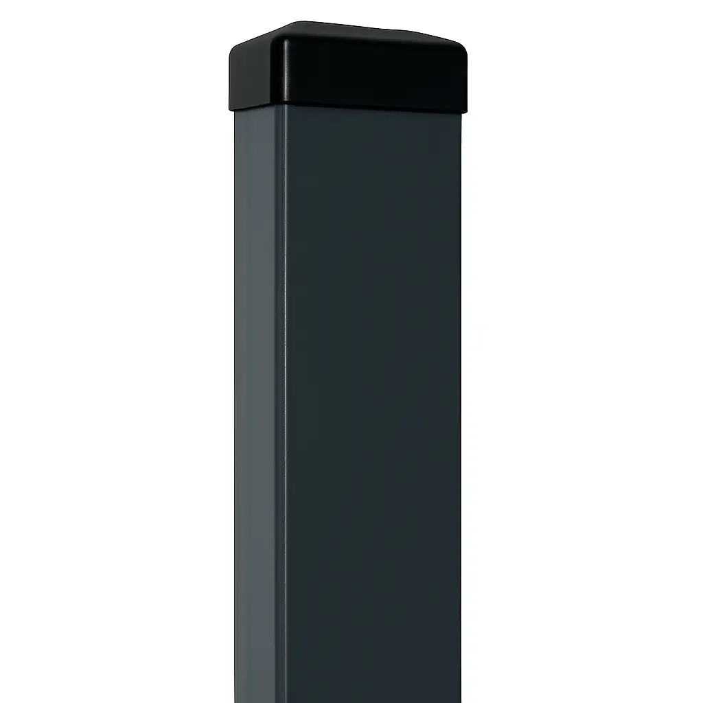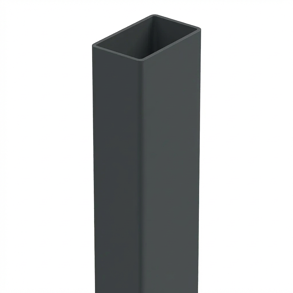 Le poteau de clôture 60×40×1,2 mm d'une longueur de 2,0 m en coloris graphite RAL 7016 est un élément porteur universel destiné à la construction de clôtures à panneaux 3D. Fabriqué à partir d'un profilé rectangulaire en acier et fini par thermolaquage, il allie une esthétique sobre et moderne à une solide protection anticorrosion.
