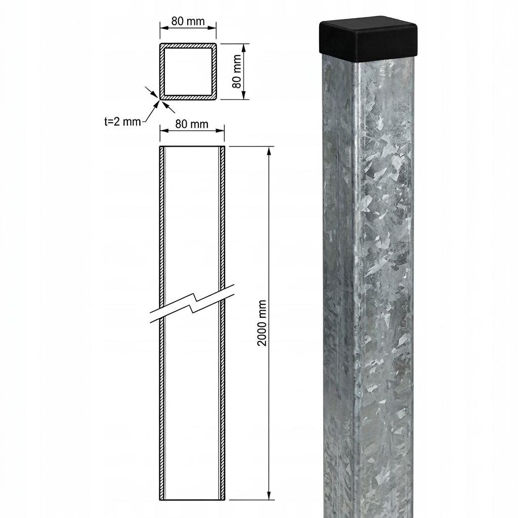 Poteau de clôture galvanisé 80x80 mm – longueur 200 cm, paroi 2 mm