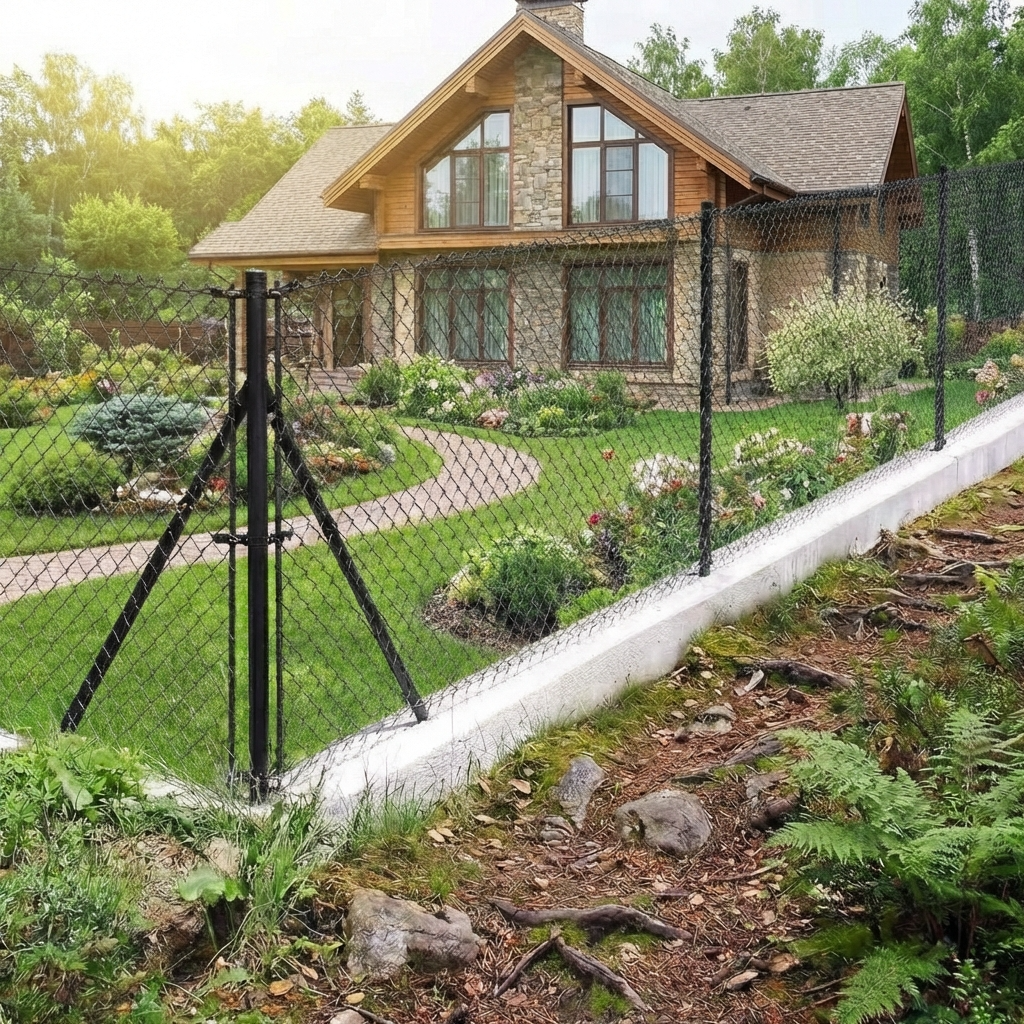 La couleur noire se marie parfaitement avec les grillages plastifiés PVC dans les tons de vert foncé et d'anthracite, ainsi qu'avec les façades de bâtiments contemporains. La clôture acquiert ainsi un aspect cohérent et esthétique qui valorise l'ensemble de la propriété.