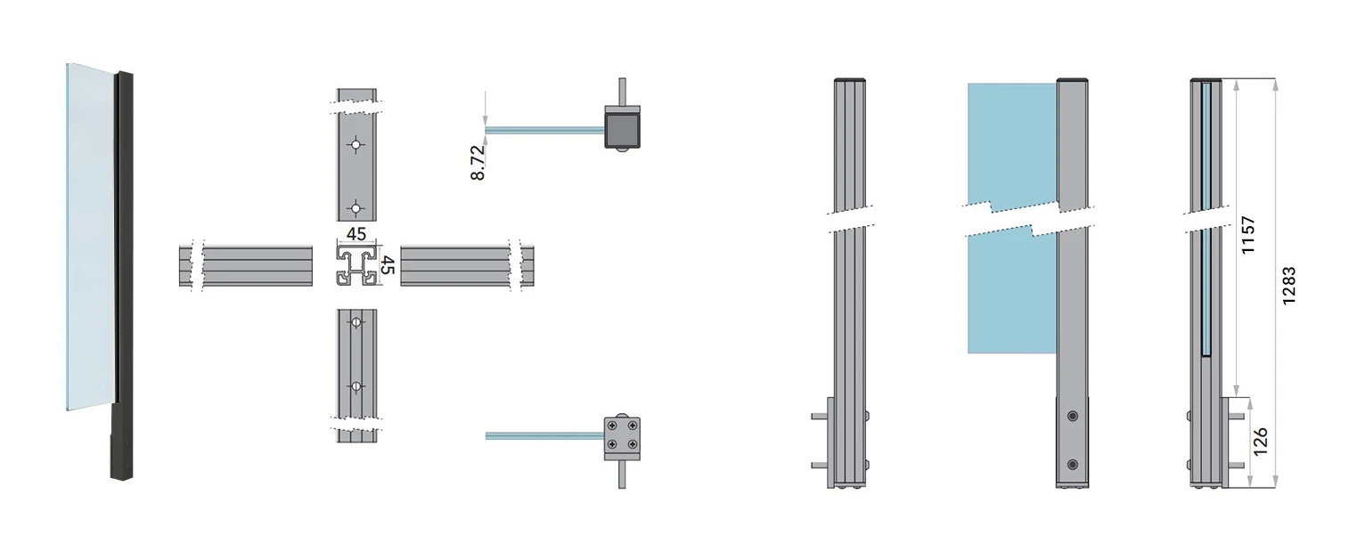- Épaisseur de verre dédiée 8,72 mm (feuilleté) — garantit un ajustement approprié et un fonctionnement prévisible du système